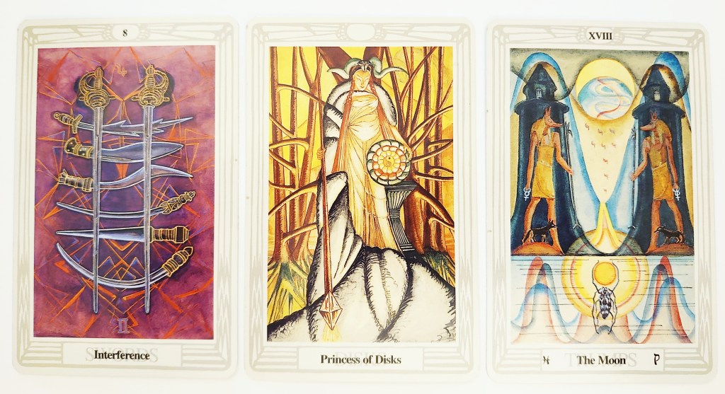 Think how pertinent the prison window symbolism of the Eight is at a time when many people are still choosing, for safety, to stay at home as much as possible; sometimes the threat is real, even when the bars are not. However, something new in the physical, material realm is coming. The ways we go about our daily business are changing. We are already starting to venture out from behind our physical and mental barriers again. A new kind of life will be born. What we don’t know yet is what that will look like, exactly: all we have are glimpses in slivers of moonlight.