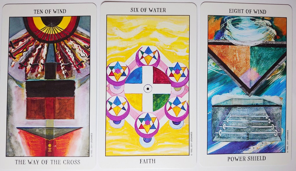 The Six of Water (aka Cups) connects us to an energy less encumbered by the mental boxes we fold ourselves into (the Eight of Wind). Not exactly childlike, but open and willing. The ability to feel, to engage receptively, to play even, without fear. There’s often a sharp intake of breath associated with the Ten of Wind, but I like the way it is described it in this deck: “… you feel as if your spirit is rising on the winds of change.” Let’s try to keep an open heart to change over the next few days.